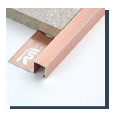 Designed for internal & external wall applications, this profile connects ceramic or natural stone tiles while protecting edges from breakage. Available in a variety of anodized finishes, powder coatings, & multiple sizes.